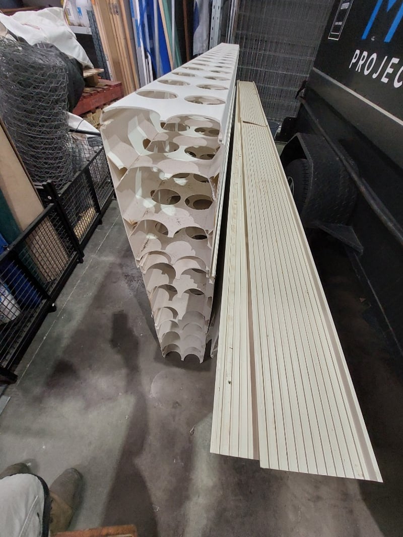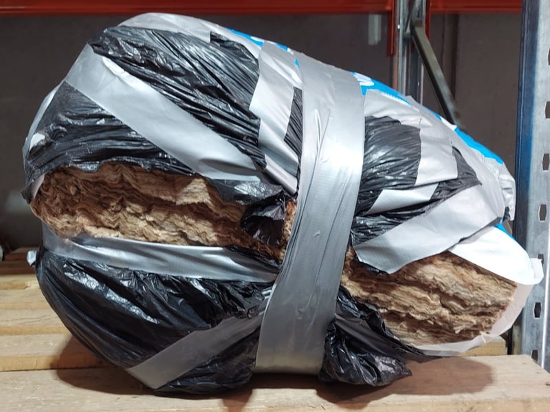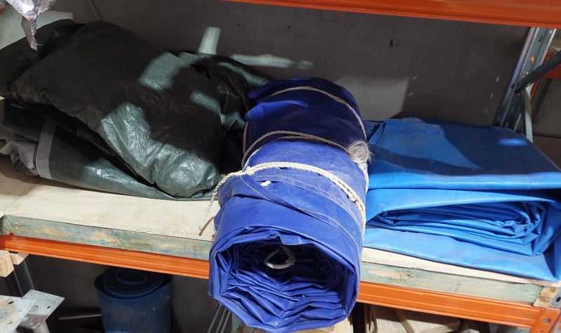 Assorted lot includes, tarps, insulation material, poly pipe and more...Sold as lot. Notes: signs of wear.