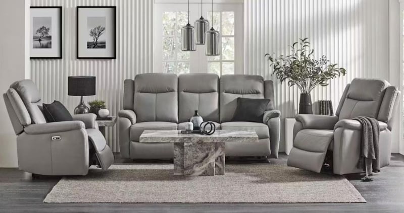 Three-Seater Indra Couch & Motion Chairs, Villa Pearl Fabric