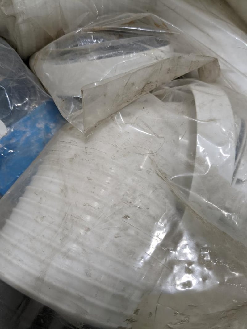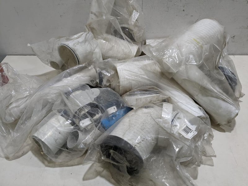 Assorted plastic pipes, different sizes. Sold as a lot.