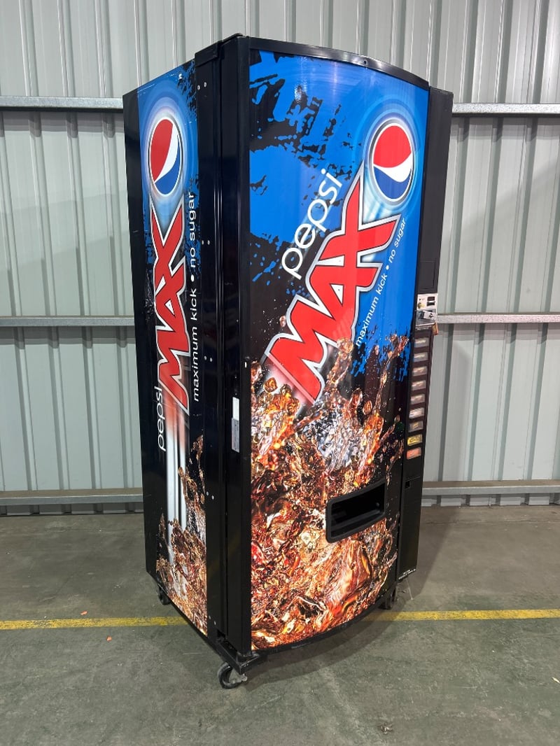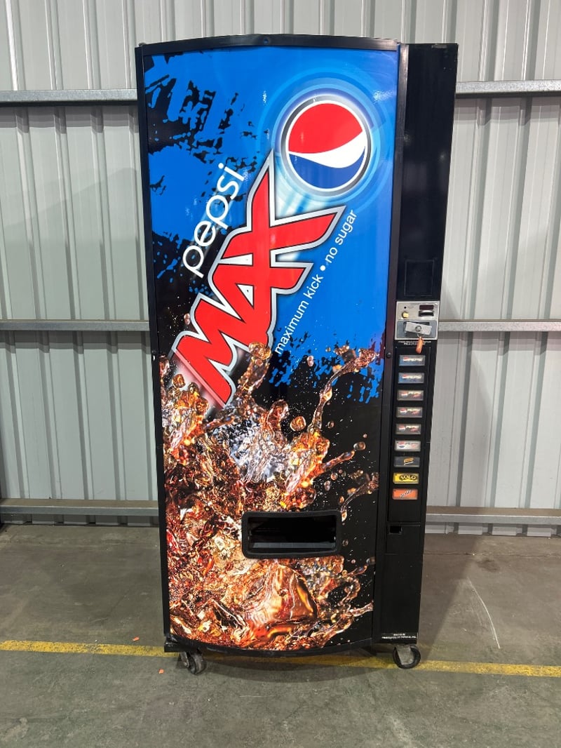 Vending Machine, Dixie Narco, Model: P1223 DN600E, Pepsi Max, Coin Operated, Refrigerated Beverage Machine, Includes Key.
