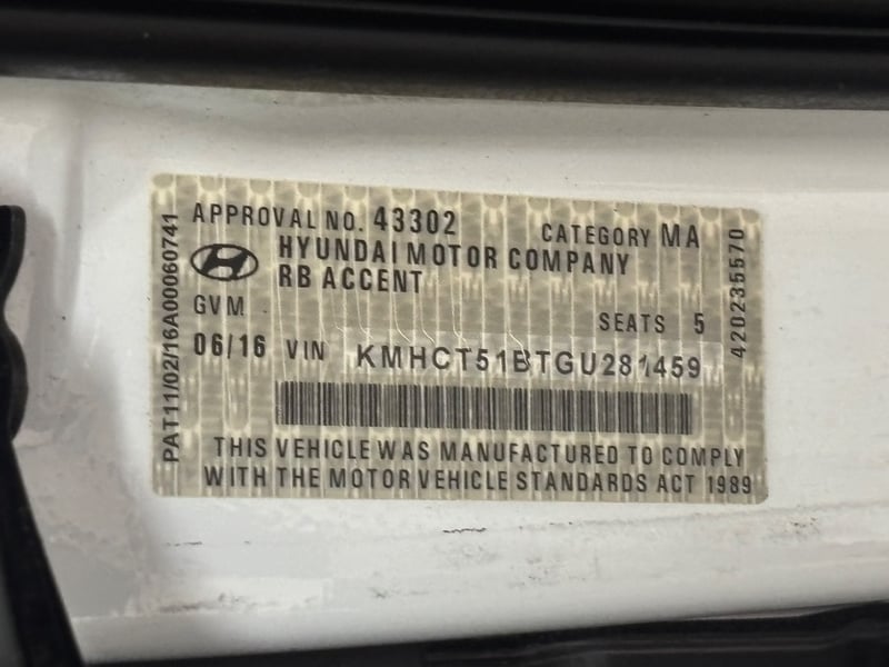 2016 Hyundai Accent RB4 Active Year: 2016 Make: Hyundai Model: Accent Series: RB4 Badge: Active Body: 5-Door Hatch Drive Type: Front wheel drive Odometer: Indicating 107,639 Kilometres Engine: 1.4 I4 Petrol Transmission: Continuously variable Colour: White Seats: 5 Description/extras: Air Conditioning, Power windows, Climate control, AUX / USB, Central locking, CD player. Spare Wheel, Traction control, multifunctional steering wheel, cup holders, sunglasses compartment Interior: - Some wear and deterioration on steering wheel - Some marks, scratches and wear on upholstery, trim and handle Exterior - some panel dents, scratches and marks as per photos - Wheel gutter rash damage as per photos. Price Guide - $6,550 - $8,400 (Based on Unmodified Vehicle) VIN: KMHCT51BTGU281459 ENG No: G4LCGU579184 AS PER PPSR (Key #A21 Carrara) Lloyd's stock #583646+1 #PCV