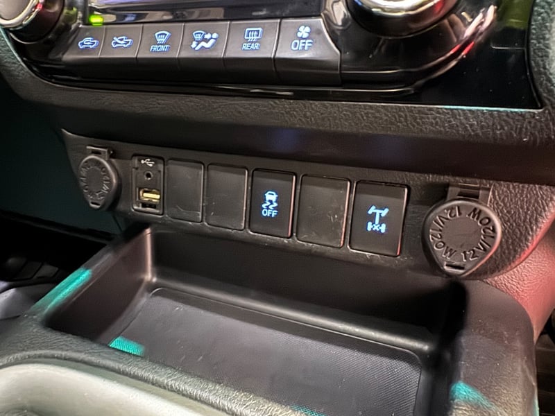 Floor mats, snorkel, rear entertainment screens, steering wheel media controls, manual adjustable seats, electric adjustable mirrors, sunglasses holder, multiple drive modes, push to start Scratches & marks, plastic/rubber fading and cracking, general interior wear.