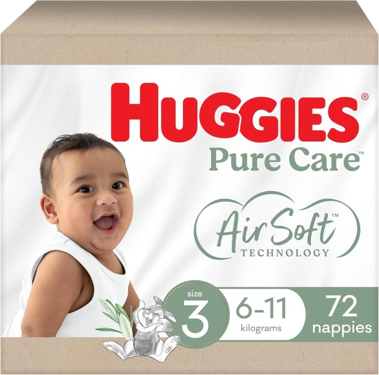 HUGGIES SIZE 3 (6-11kg)- BOYS & GIRLS - PURE CARE NAPPIES- 72 Count - Airsoft Technology- Retail Return- As new condition - Original box- Sealed