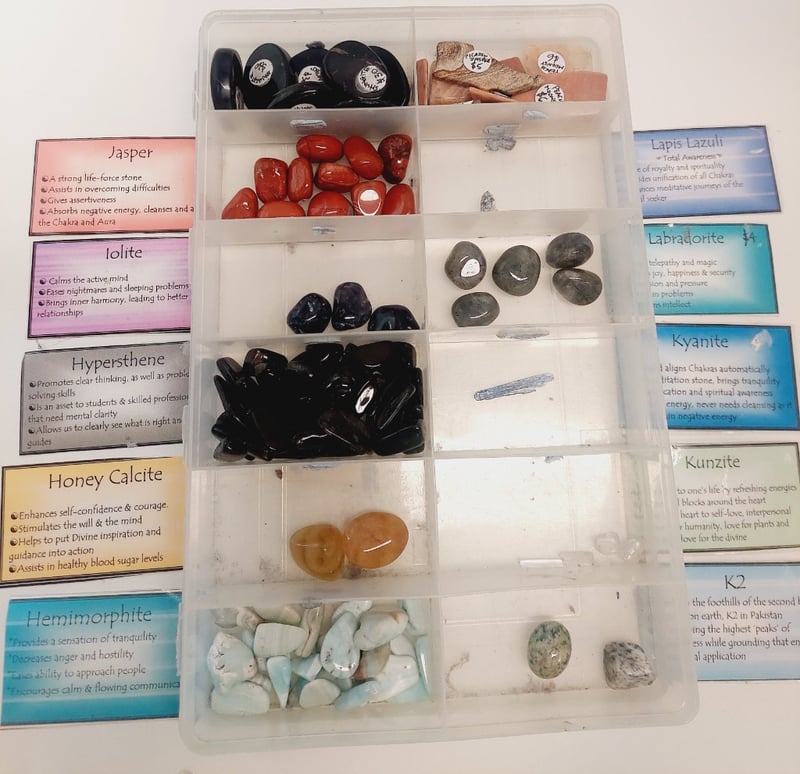 ASSORTED CRYSTALS INCLUDING, HEMIMORPHITE, HONEY CALCITE, HYPERSTHENE, LOLITE, JASPER, LAPIS LAZULI, LABRADORITE, KYANITE, KUNZITE AND K2.SOLD AS A LOT.Condition: Good - Refer To Images488378+17