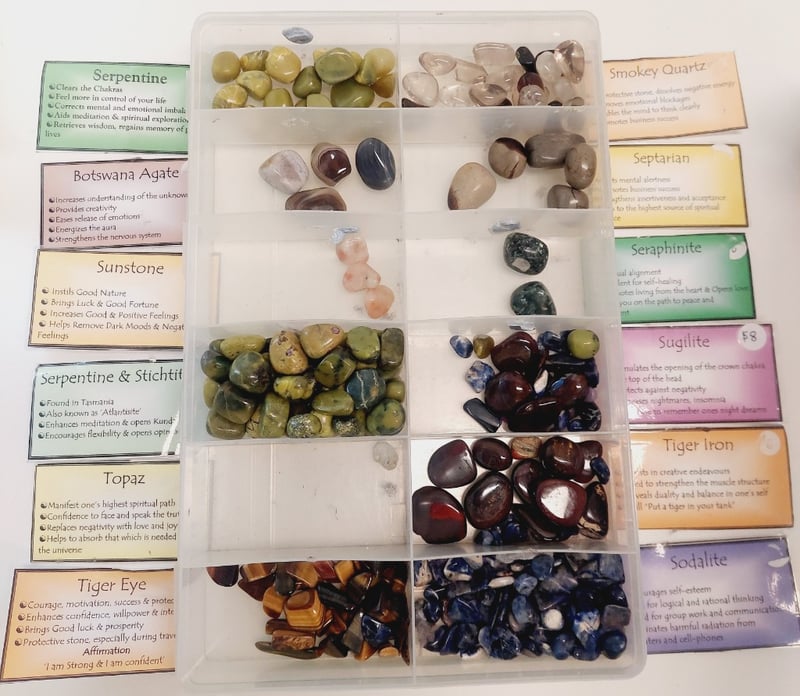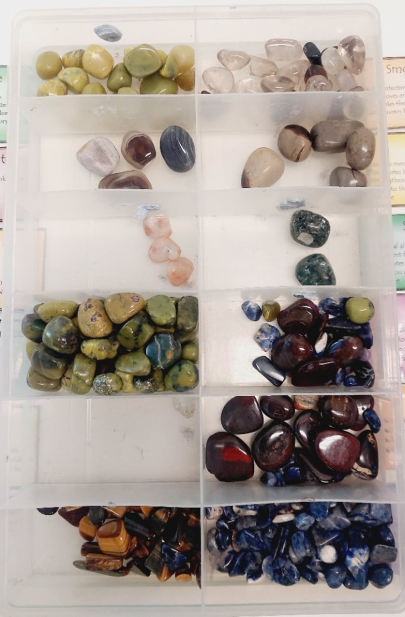 ASSORTED LOT OF STONEA AND CRYSTALS INCLUDING, TIGERS EYE, TOPAZ, SUNSTONE, BOTSWANE AGATE SEPENTINE, SODALITE, TIGER IRON SMOKEY QUARTZ AND MORE...SOLD AS A LOT.Condition: Good - Refer To Images488378+113