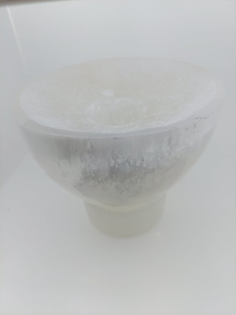 SELENITE CRYSTAL CANDLE HOLDER.Condition: Good - Refer To Images488378+26