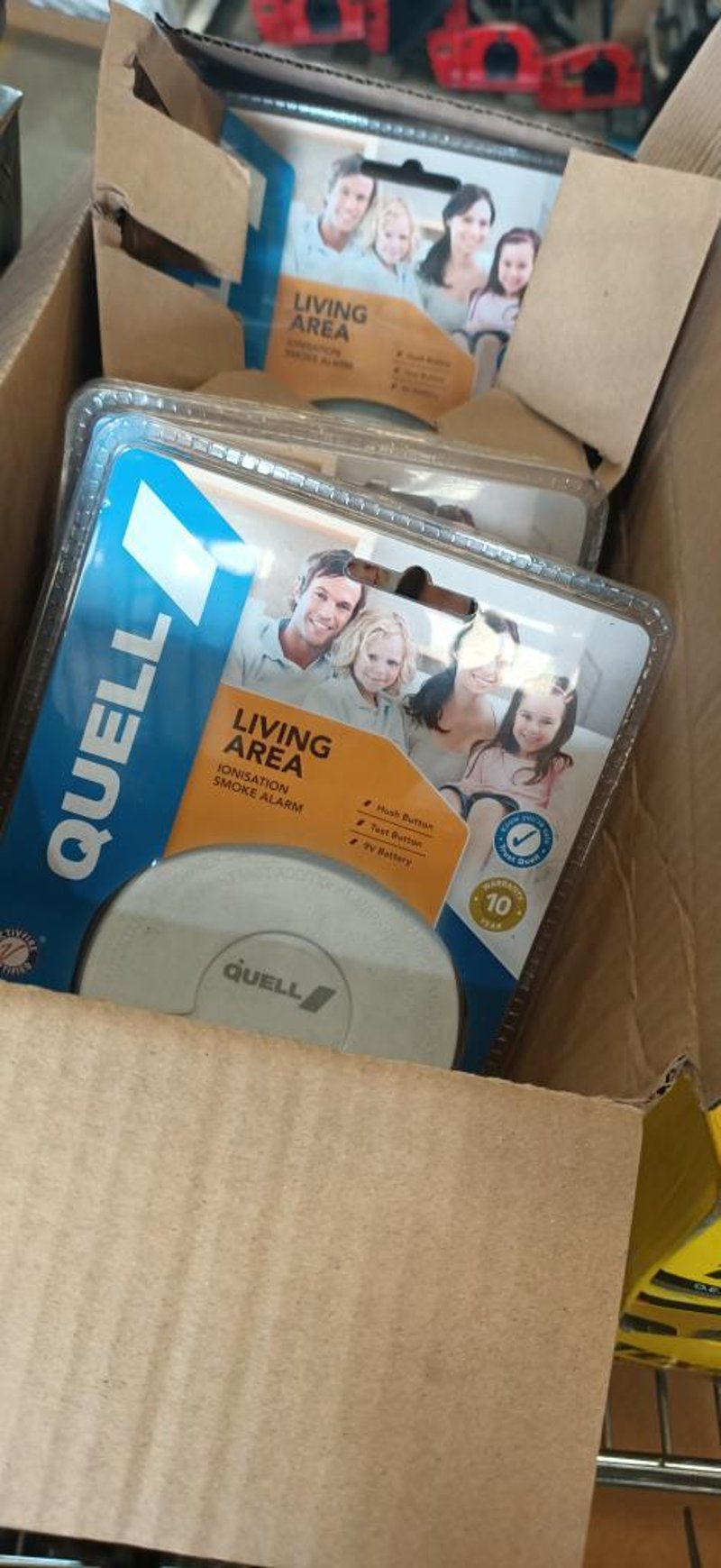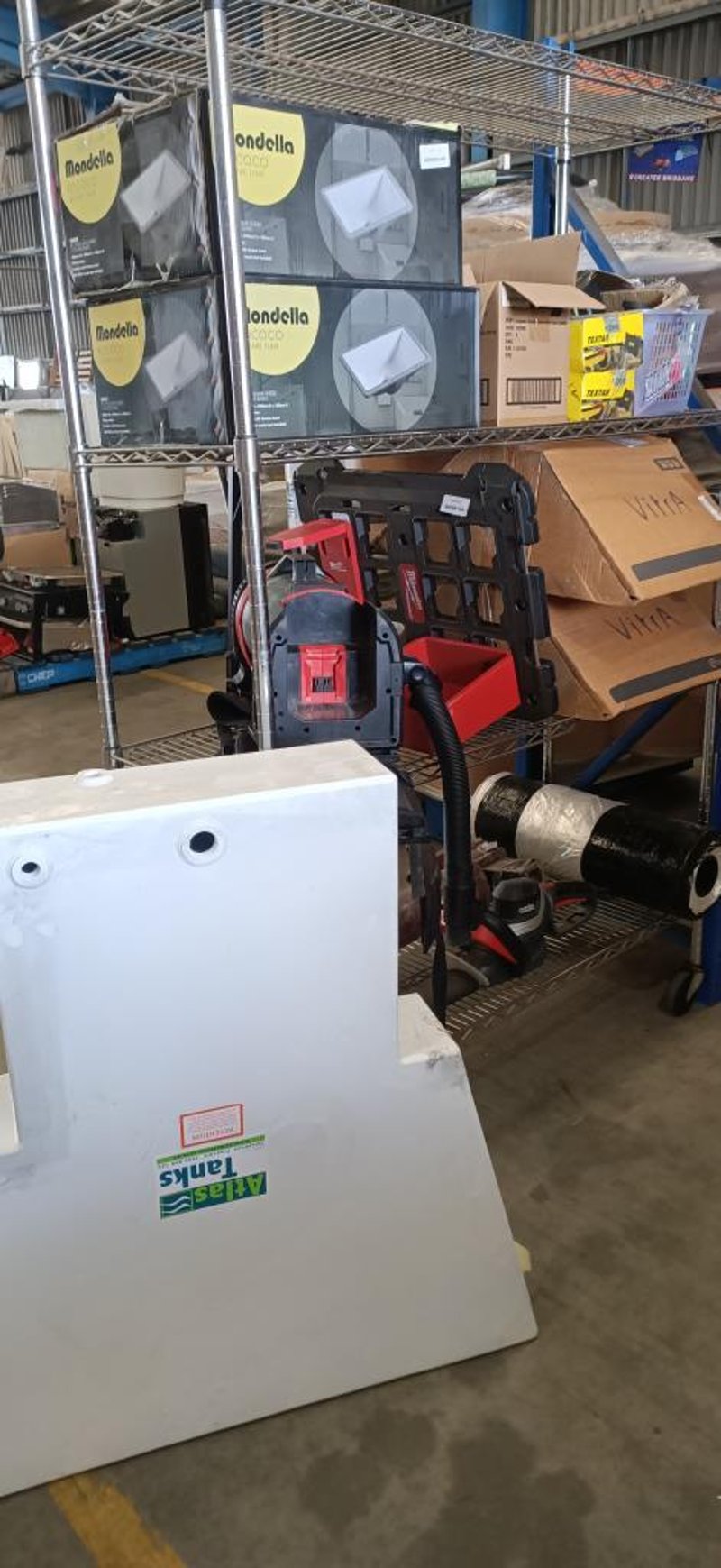 Assorted DIY Items Including Vice, Water Tank, Basins, Smoke Alarms & More SOLD AS LOT NOTE: CHROME RACK NOT INCLUDED NOTE: PICK UP ONLY NOTE: MUST BE COLLECTED WITHIN 48 HOURS OF AUCTION