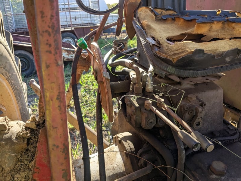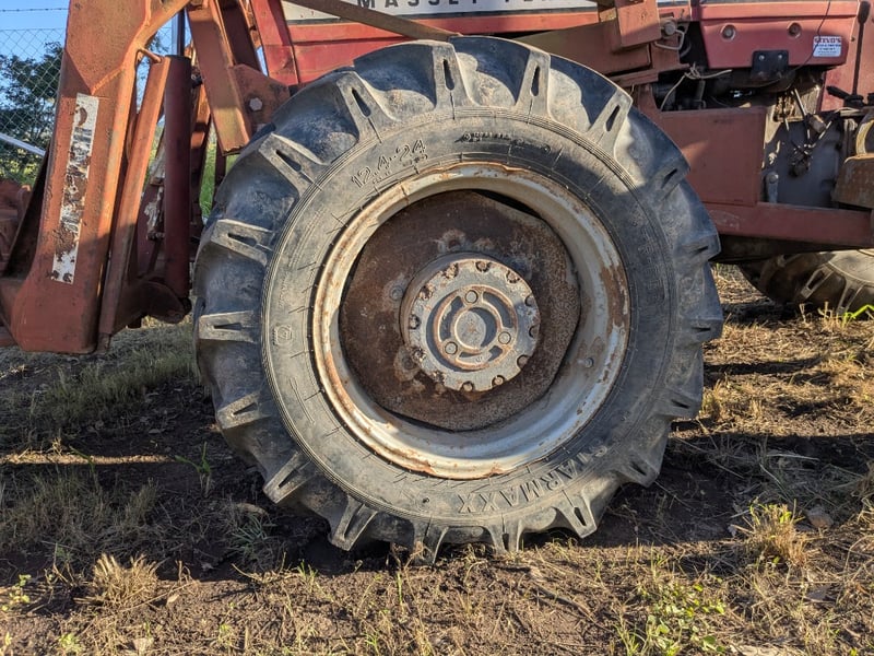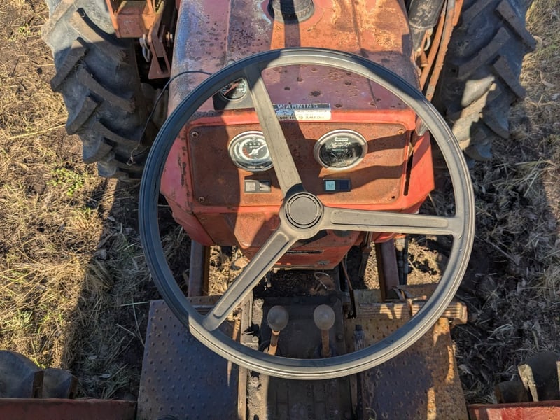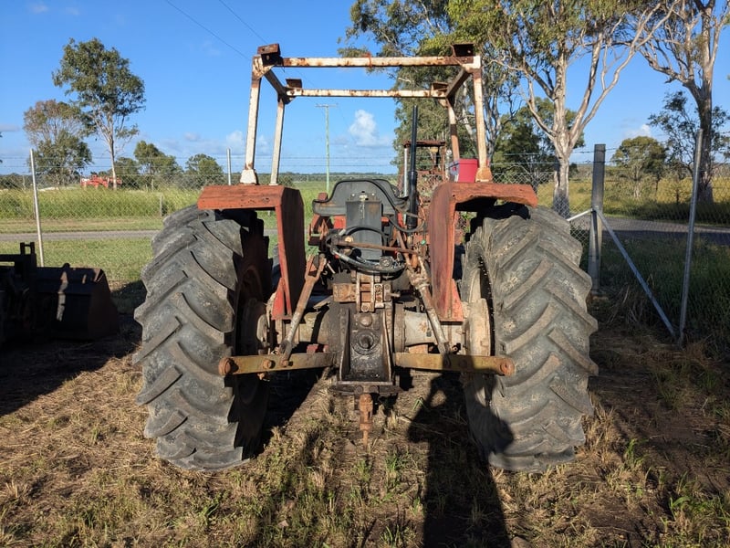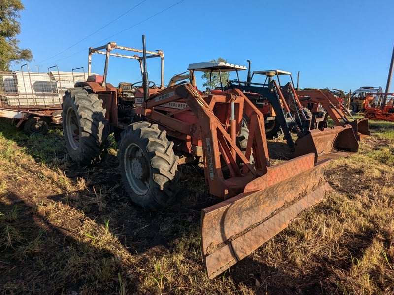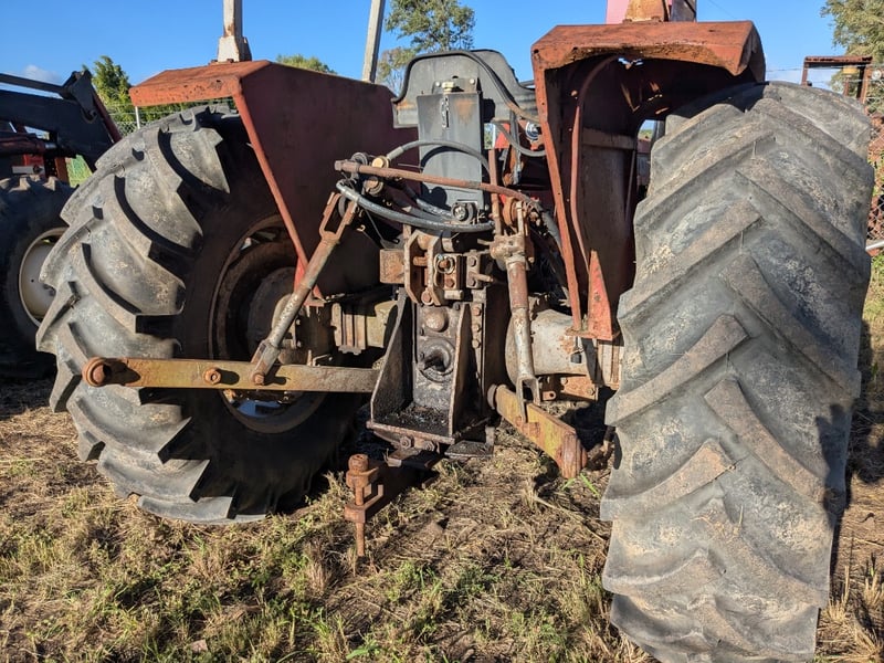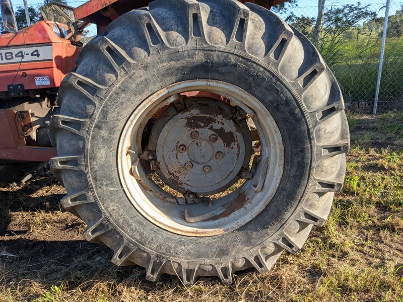 Massey Ferguson 184-4 Tractor Year: Unknown Make: Massey Ferguson Model: MF 184/4 SN: 2203860 Engine: 4-cylinder diesel (Perkins) Power: 68 hp (50.7 kW) PTO Power: ~62 hp (46.2 kW) Fuel Capacity: 16 gal (60.6 L) Hours: not sighted Mechanical & Hydraulics (184-4 Tractor) Drive: 4WD Transmission: Multiple/Sync Shuttle Steering: Hydrostatic power steering Brakes: Dry disc Hydraulics: Open center, 28.1 gpm (106.4 lpm) total flow Rear Hitch: Category II, 5842 lbs (2649 kg) lift capacity
