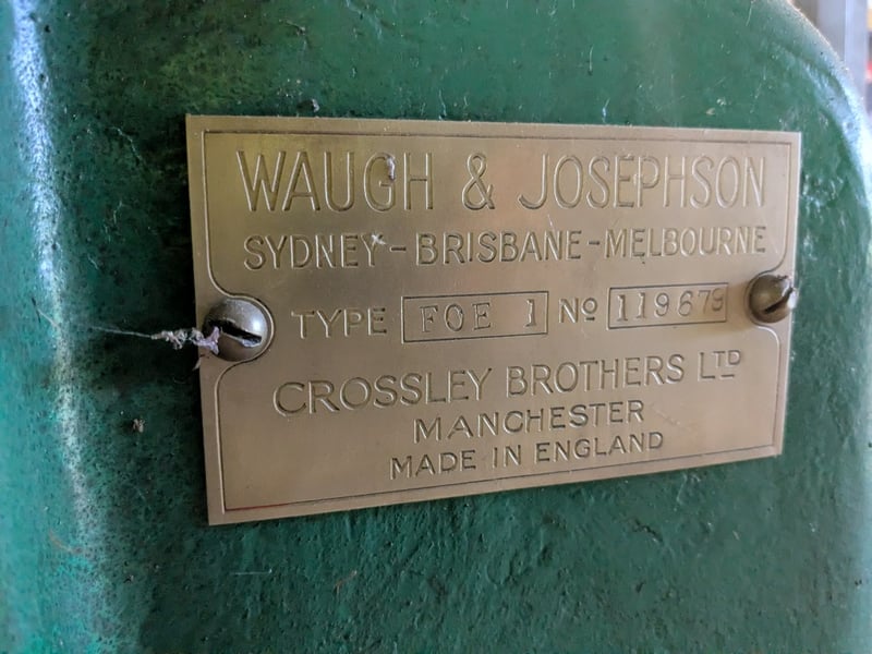 Reconditioned Crossley Engine Year: Unknown Make: Waugh & Josephson Model: FOE1 SN: 119679 Been a while since last turned on, however was Operational and working