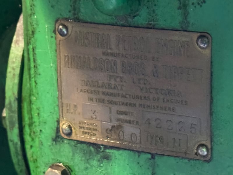 Ronaldson Tippet Stationary Engine Year: Unknown Make: Ronaldson Tippet Model: Lister D Type 3hp SN: 42225 Petrol engine