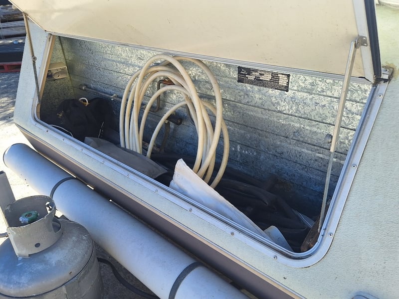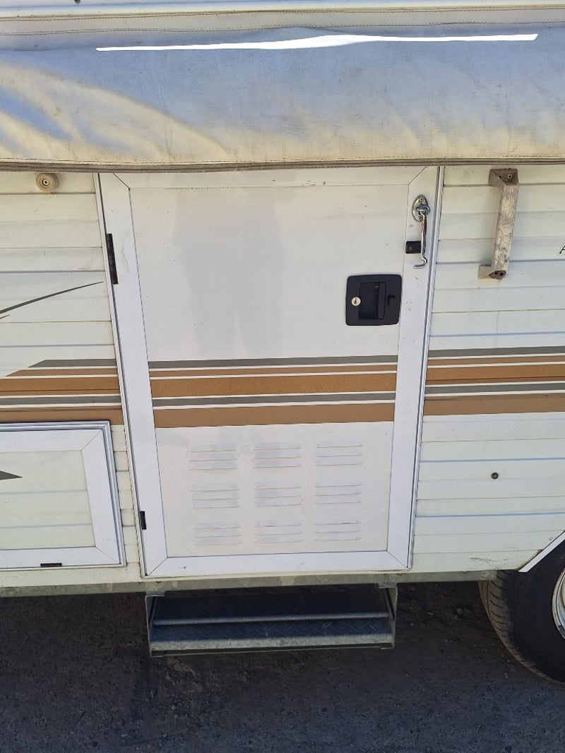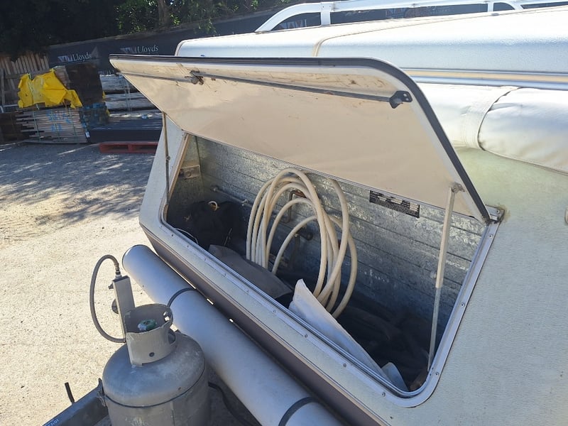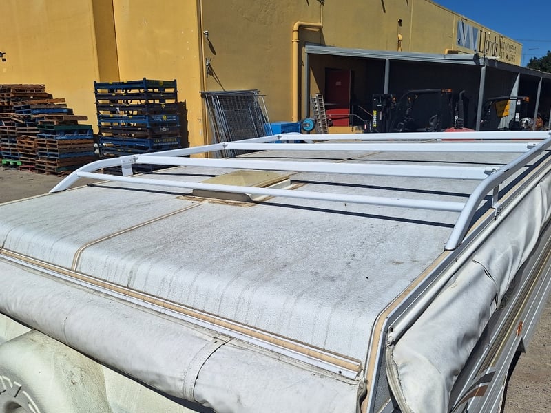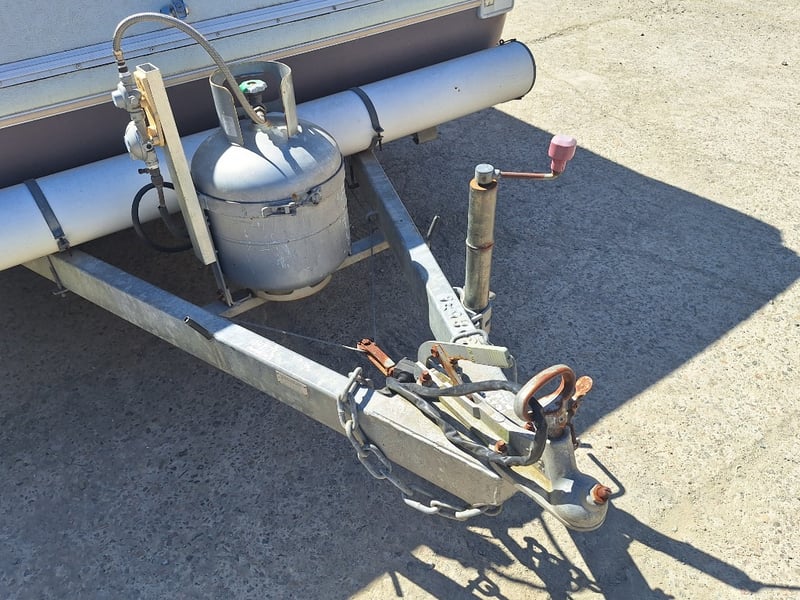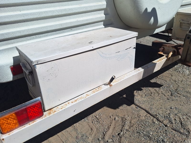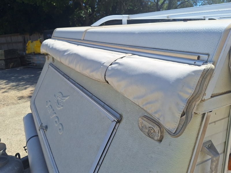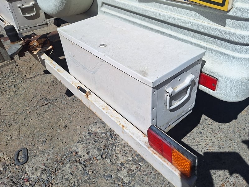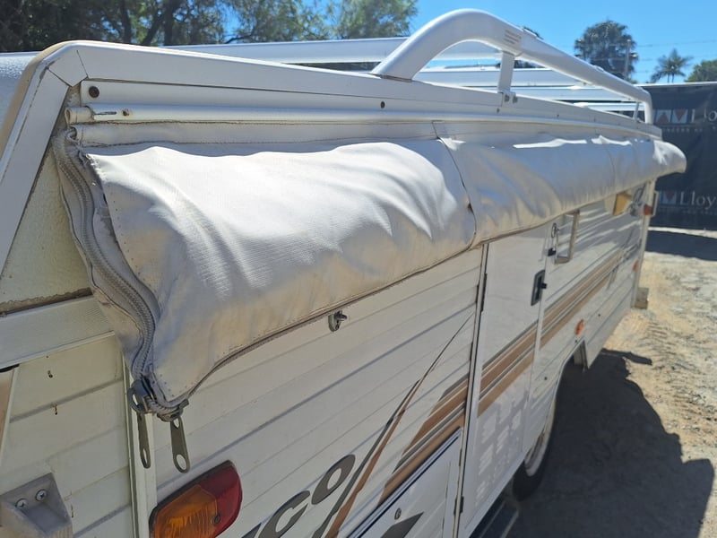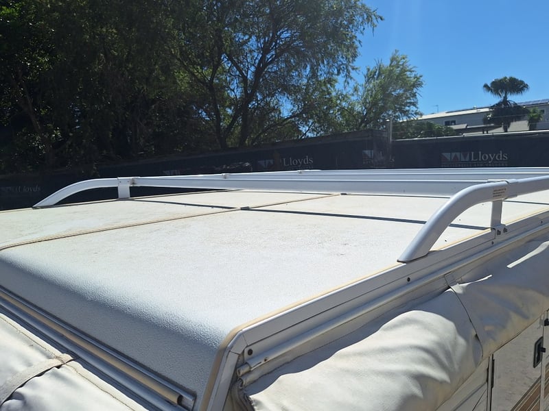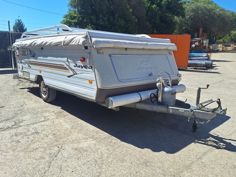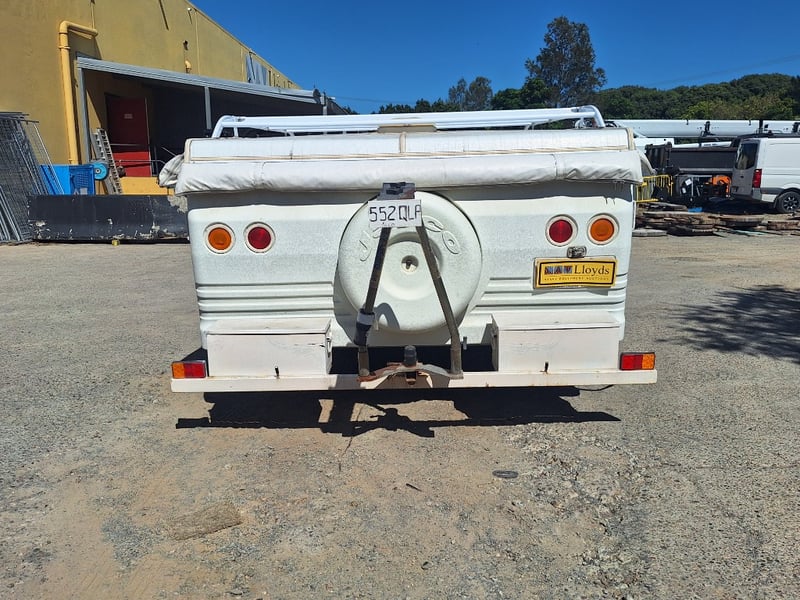 Description/Extras: Pop Top Caravan, 50mm Tow Hitch, Chains, Jockey Wheel, 7Pin Flat Male Connection, 9kg Gas Bottle In Holder, Front Storage With Accessories And Hoses, Awning Pole Case, 100kg Roof Racks, 240v Power Outlet, Rear Mounted Boxes, Bike Carrier, Spare Tyre, Stabilisation Legs, Roll-Out Awning, Wind-Up Pop-Top Roof (Manual Lift)