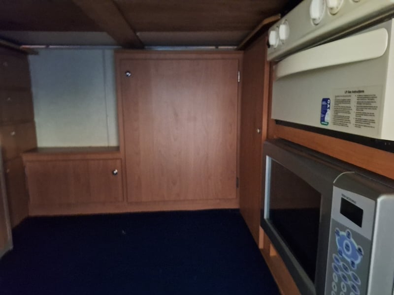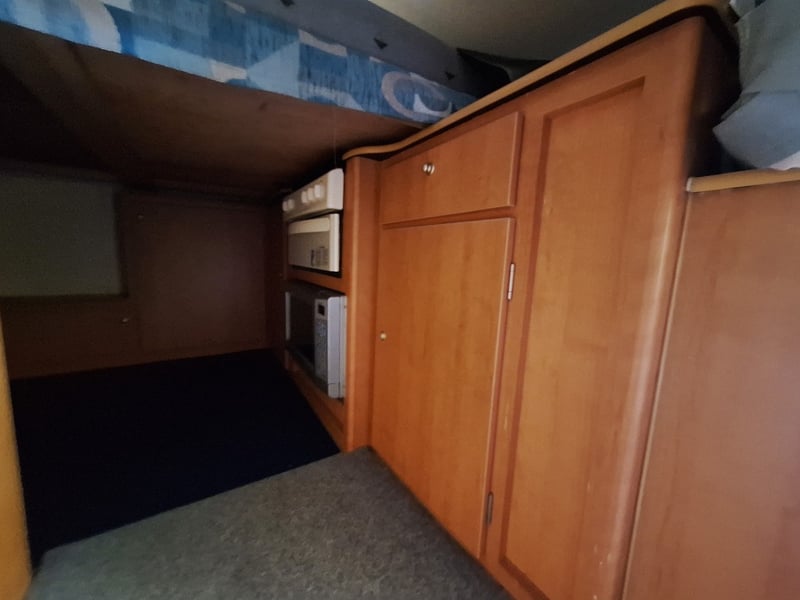 Basic Cabinetry + Lounge Seating, Storage Under Seats & Bed, Stove, Grill, Microwave, Fridge, Sleeps: 5 minimum, Front Queen Bed, Rear Double Bed,