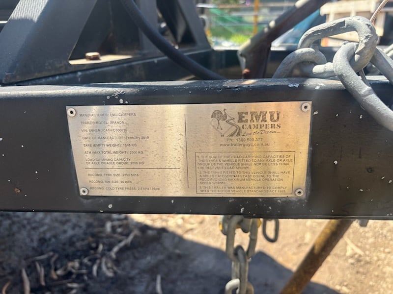 2019 Emu Xpanda Camper Trailer Forward folding Tare 1545kg ATM 2000kg Solar Duel batteries Side awnings never been used 180L water storage VIN: 6NHEMUCAMKC000035 Location; Caboolture, QLD