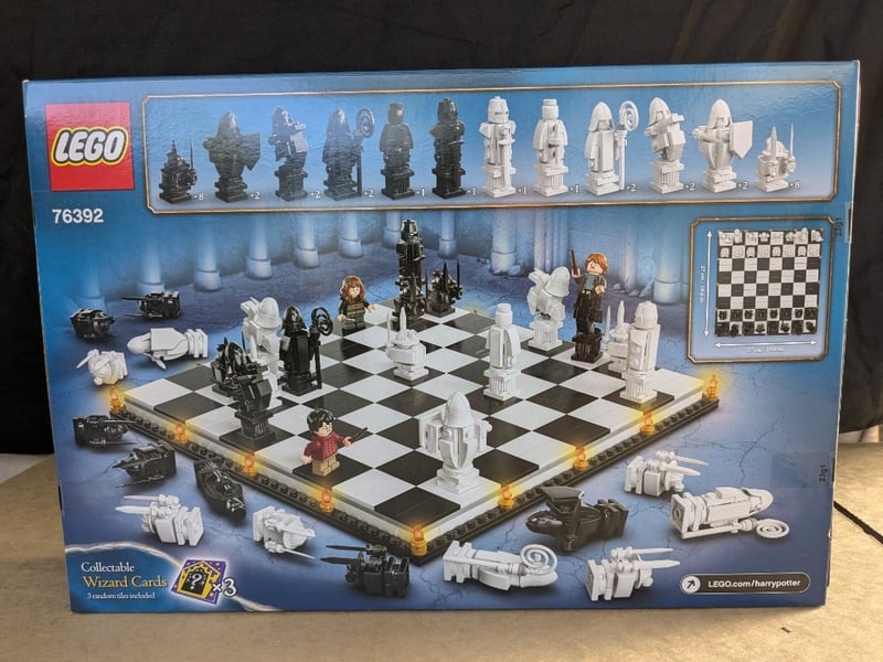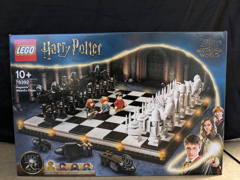 LEGO HARRY POTTER HOGWARTS WIZARD'S CHESS SET 76392Lego Harry Potter Set 76392 Featuring The Iconic Hogwarts Wizard'S Chess From The Film Series. Complete With Detailed Architectural Chess Pieces In Black And White, Minifigures Including Harry Potter, Hermione Granger, And Ron Weasley, Illuminated Checkered Board With Golden Accent Lighting, And Accompanying Accessories. Includes Collectable Wizard Cards. Designed For Ages 10+.Condition: Good - Refer To Images584572+252
