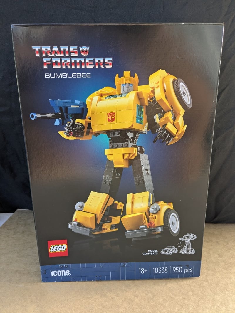 LEGO ICONS TRANSFORMERS BUMBLEBEE SET 10338Lego Icons Transformers Bumblebee (Set 10338) - 950-Piece Collectible Building Set Featuring Detailed Model Conversion System. Transforms From Yellow Volkswagen Beetle Vehicle To Articulated Robot Form With Poseable Limbs And Rotating Components. Includes Multiple Transformation Stages And Display Configurations. Age 18+. Sealed Original Packaging With Minor Shelf Wear Visible On Box Exterior.Condition: Good - Refer To Images584572+255