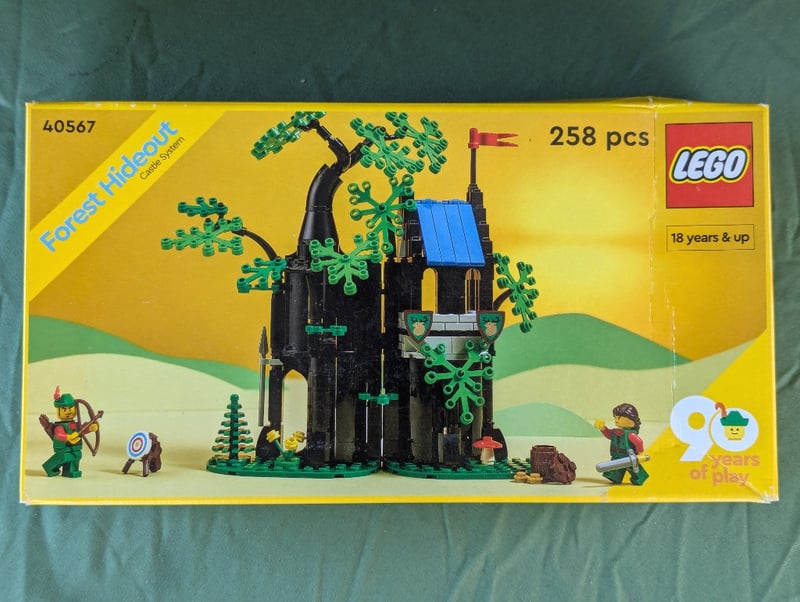 LEGO FOREST HIDEOUT CASTLE SET 40567 - VINTAGE CASTLE-SYSTEM THEMELego Forest Hideout Castle Set 40567 Featuring 258 Pieces With Black Stone Castle Tower, Green Foliage Trees, Blue Roof Panel, Red Flag, And Four Minifigures Including Archers And Guards. Classic Castle-System Theme From Lego'S 90-Year Anniversary Collection.Condition: Good - Refer To Images584572+314