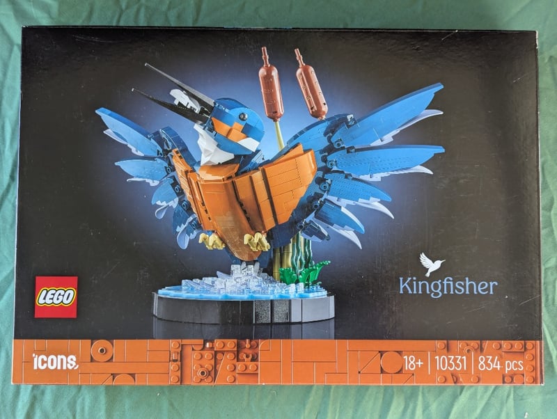 LEGO ICONS KINGFISHER SET 10331Lego Icons Kingfisher (Set 10331) Featuring 834 Pieces. Adult-Oriented Collectible Set Depicting A Blue And Orange Kingfisher Bird With Articulated Wings, Perched On A Naturalistic Base With Water Elements And Botanical Details. Includes Copper-Toned Cattail Reeds And Green Foliage. Designed For Ages 18+. Sealed, Unopened Condition With Original Packaging Showing Product Imagery And Specifications.Condition: Good - Refer To Images584572+323