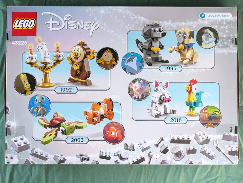 LEGO DISNEY 100 CELEBRATION SET 43226 - SEALED COLLECTIBLEUnopened Lego Disney 100 Set (43226) Commemorating Disney'S Centennial Anniversary. Features Buildable Minifigures From Iconic Films Spanning 1992-2016, Including Characters From Beauty And The Beast, Aladdin, Pocahontas, Moana, And Finding Nemo. Includes Lumiere, Cogsworth, Mrs. Potts, Genie, Meeko, Puss In Boots, Tamatoa, And Nemo With Accessories. Set Designed For Ages 6+. Retail Packaging Intact With Product Imagery And Construction Details Visible On Reverse.Condition: Good - Refer To Images584572+324