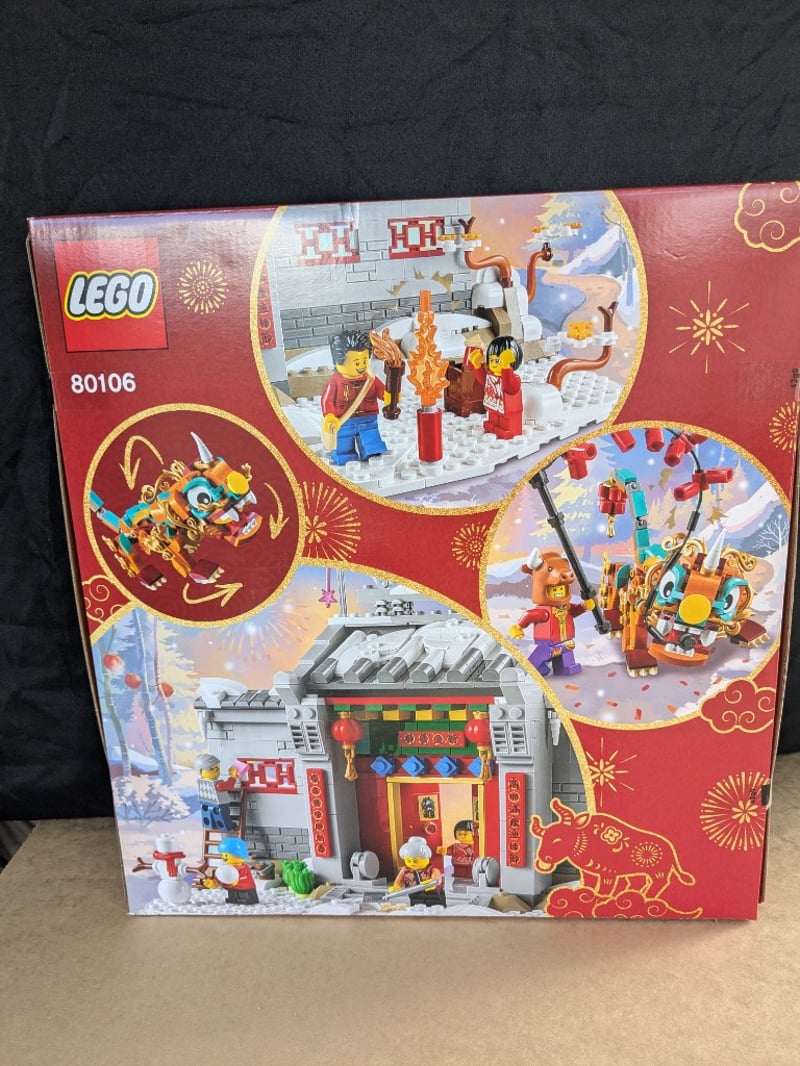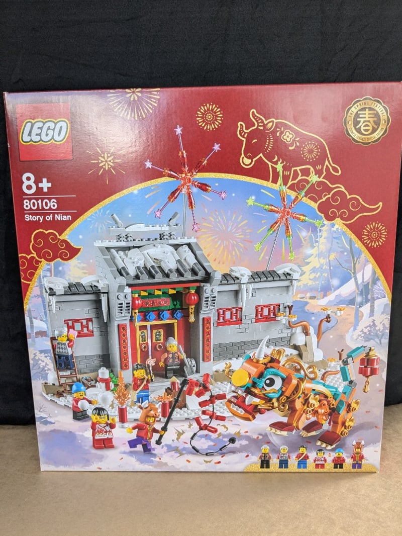 LEGO 80106 STORY OF NIAN CHINESE NEW YEAR LUNAR FESTIVAL BUILDING SETLego Set 80106 "Story Of Nian" Featuring A Traditional Chinese Temple Structure With Red And Gold Detailing, Includes Minifigures, Decorative Elements, And A Golden Lion Dance Figure. Designed For Ages 8+, Celebrating Lunar New Year Traditions With Intricate Architectural Details And Festive Accessories.Condition: Good - Refer To Images584572+330