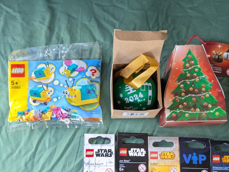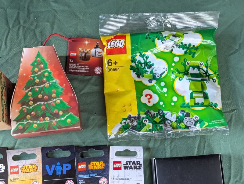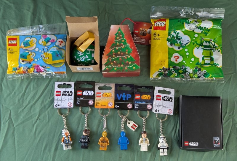 COLLECTION OF LEGO PIECES, SETS AND KEYCHAINSIncludes Six Lego Keychains, Lego Star Wars '40 Return Of The Jedi' Coin And Card, Christmas Items, Two Lego Sets - Snail And Frog584572+331