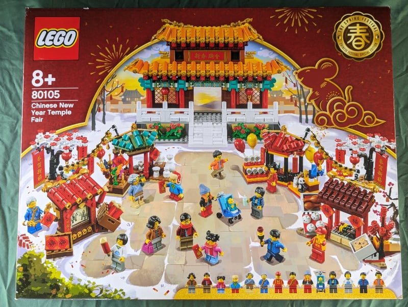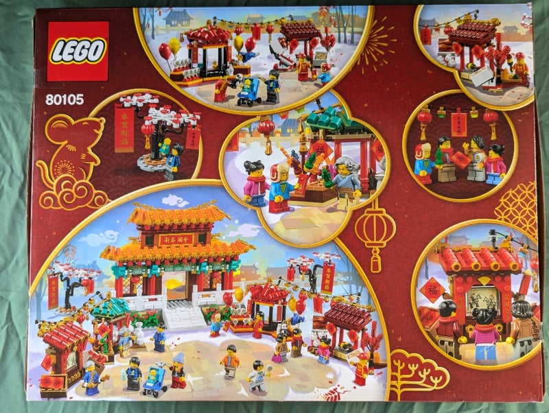 LEGO 80105 CHINESE NEW YEAR TEMPLE FAIR SETLego Set 80105 Featuring A Detailed Chinese New Year Temple Fair Display With Multi-Tiered Pagoda-Style Temple Structure, Ornate Golden Roof Details, Red And Gold Decorative Elements, Numerous Minifigures In Traditional Attire, Market Stalls, Lanterns, And Festive Accessories. Complete With Instruction Manual And Original Packaging Depicting The Assembled Scene.Condition: Good - Refer To Images584572+334