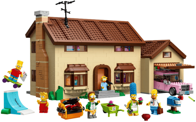 742 Evergreen Terrace The Simpsons House In 2,523 Pieces. The Iconic Yellow House Opens To Reveal Homer And Marge'S Bedroom, Bart'S Room, Lisa'S Room, The Kitchen With The Famous Doughnut, The Living Room With Couch Gag Setup, And The Garage With Homer'S Pink Sedan. Six Minifigures: Homer, Marge, Bart, Lisa, Maggie, And Ned Flanders.