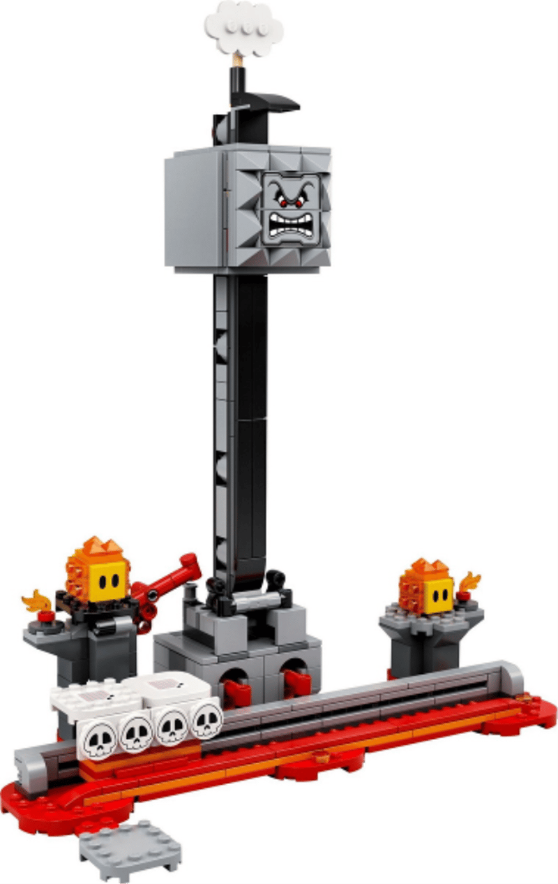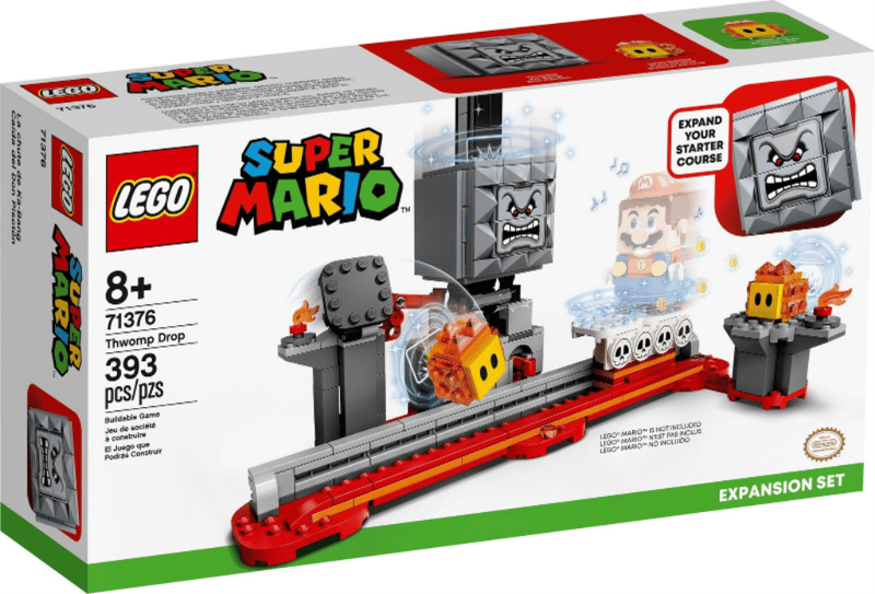 Lego Super Mario Thwomp Drop 393 Pieces. Part Of The Interactive Lego Super Mario System Where Builds Connect With The Digital Mario Figure (Sold Separately In The Starter Course). This Expansion Set Adds New Challenges, Enemies, And Terrain To The Super Mario Course.