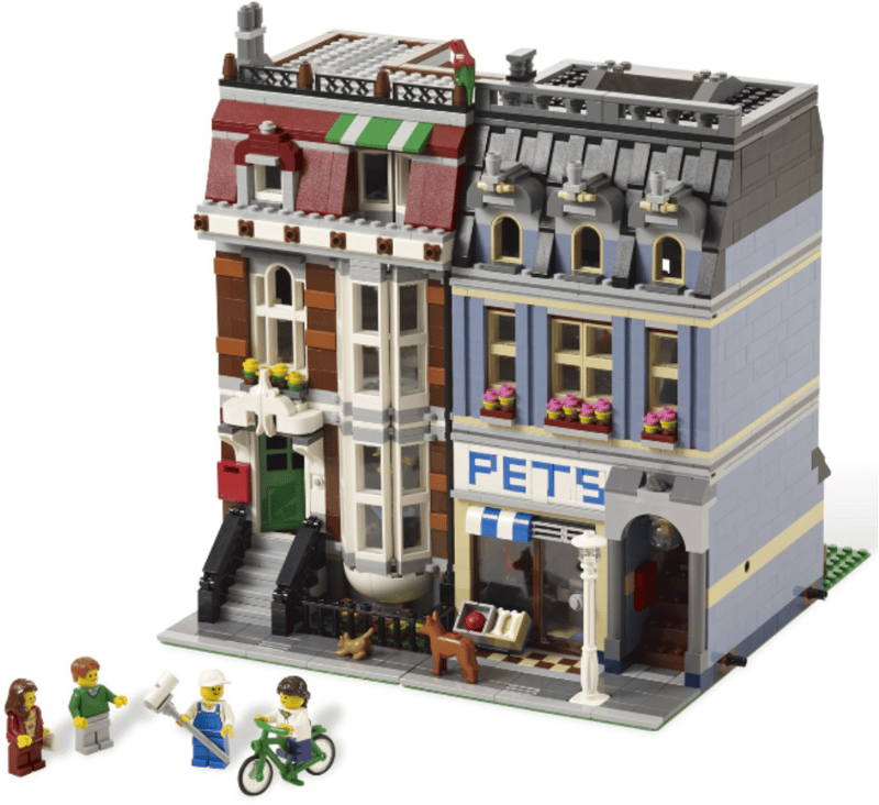Lego Pet Shop 2,032 Pieces. Part Of The Legendary Modular Buildings Collection Lego'S Premium Adult-Focused Building Series Designed To Connect Into A Customisable Street Scene. Each Floor Is Removable To Reveal Detailed Interiors. Includes 4 Minifigures.