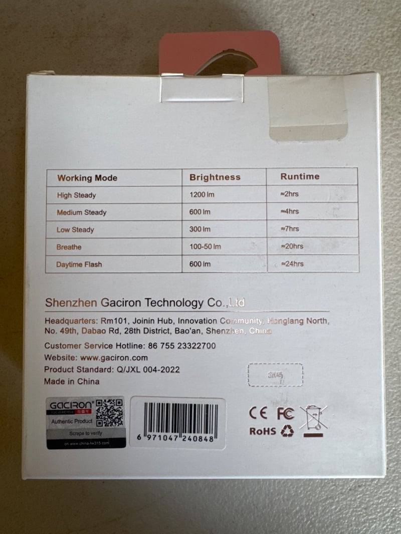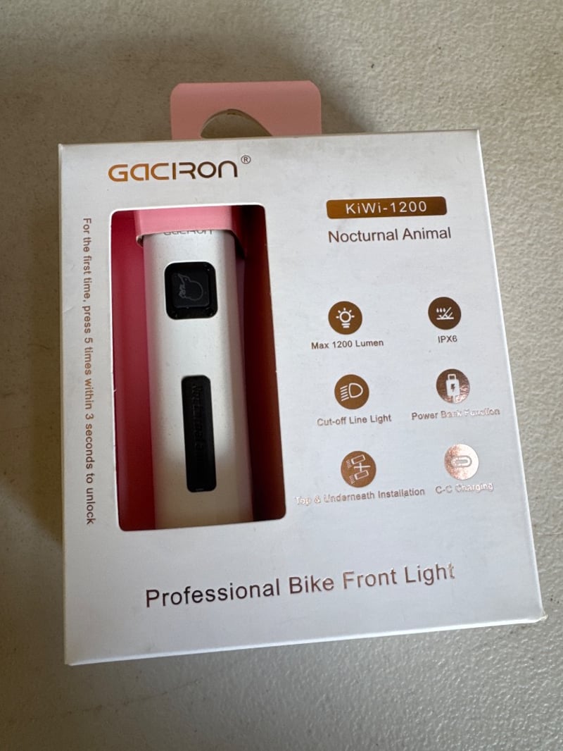 RRP $129 Gaciron Kiwi 1200LM Anti Glare Front Bike Light White