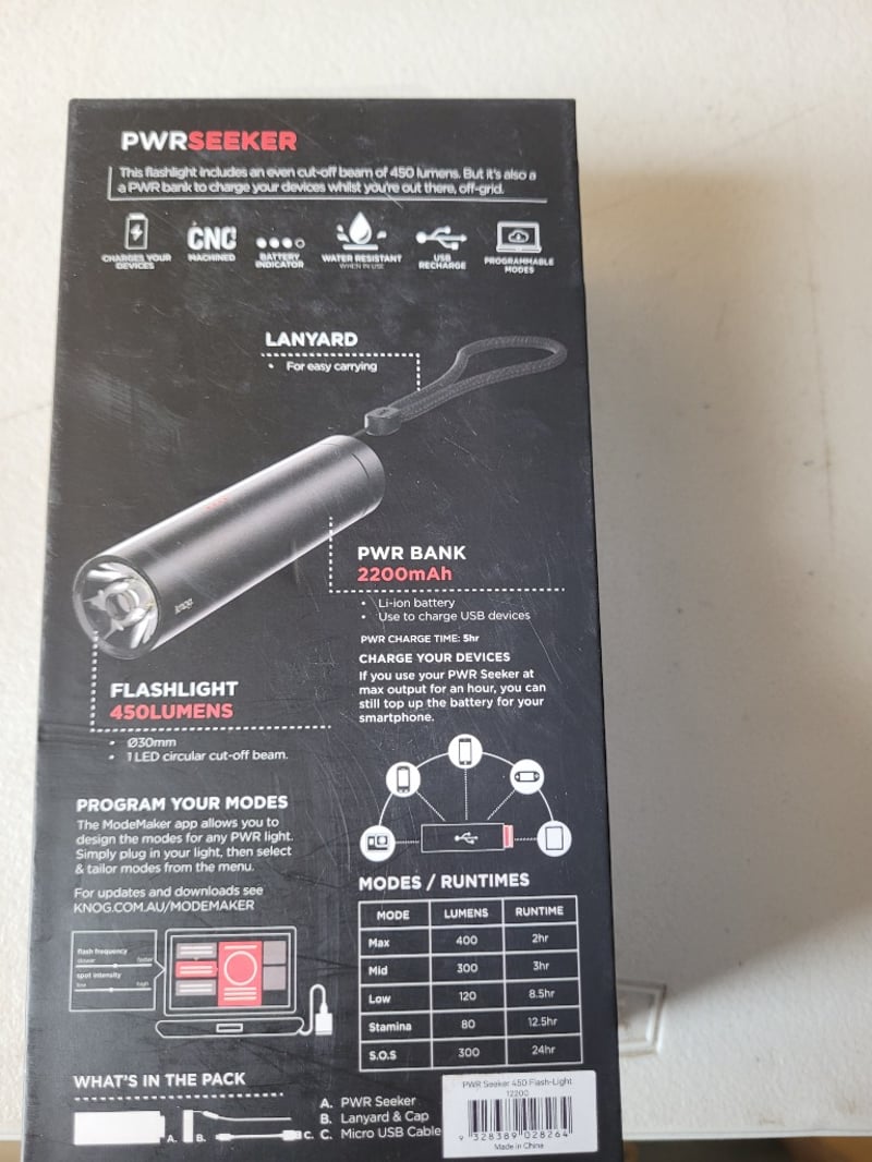 Pwr seeker flashlight and power bank
