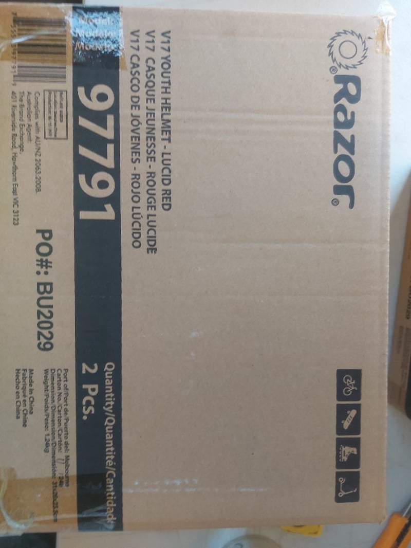 RRP $70 Razor V17 Youth HelmetA cutting-edge youth safety helmet for biking, skating, and more! The ergonomic interior padding is comfortable and secure, with 17 top and side vents which help riders keep a cool head on hot days. The side release buckles adjust and fasten quickly. Integrated Retention StrapThick Protective External Shell17 Open Air cooling ventsAdjustable dial for the perfect fitSizing: 56 to 60CMRecommended for ages 8 to 14 yearsBID PER EACHMUST TAKE TWO HELMETS/ONE BOX