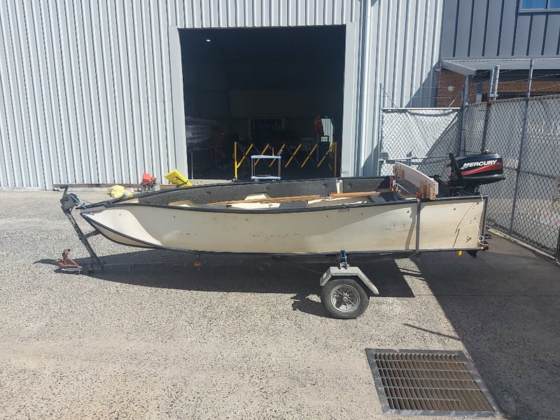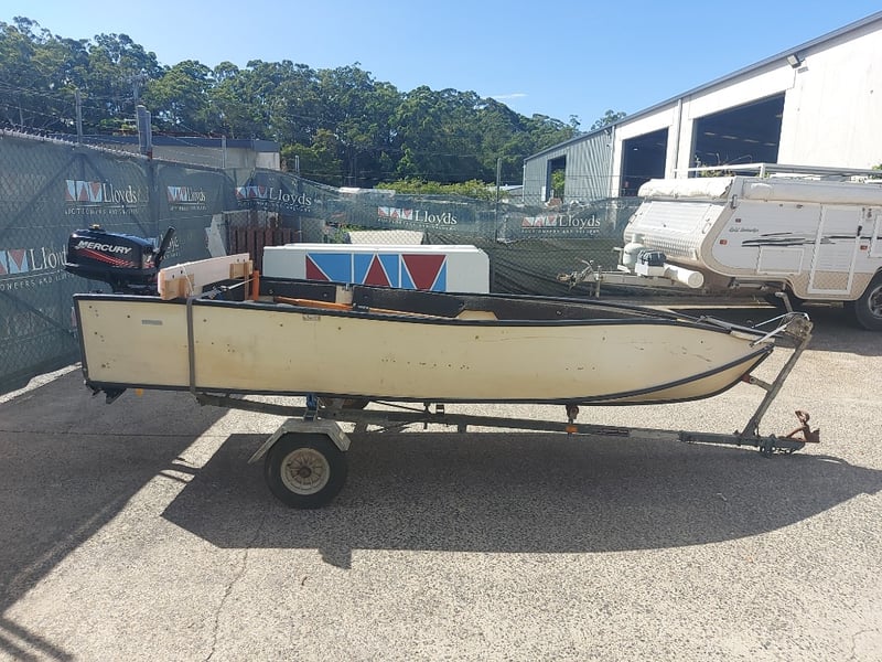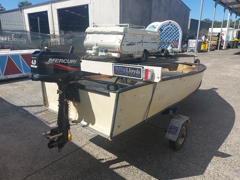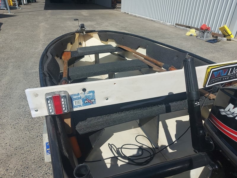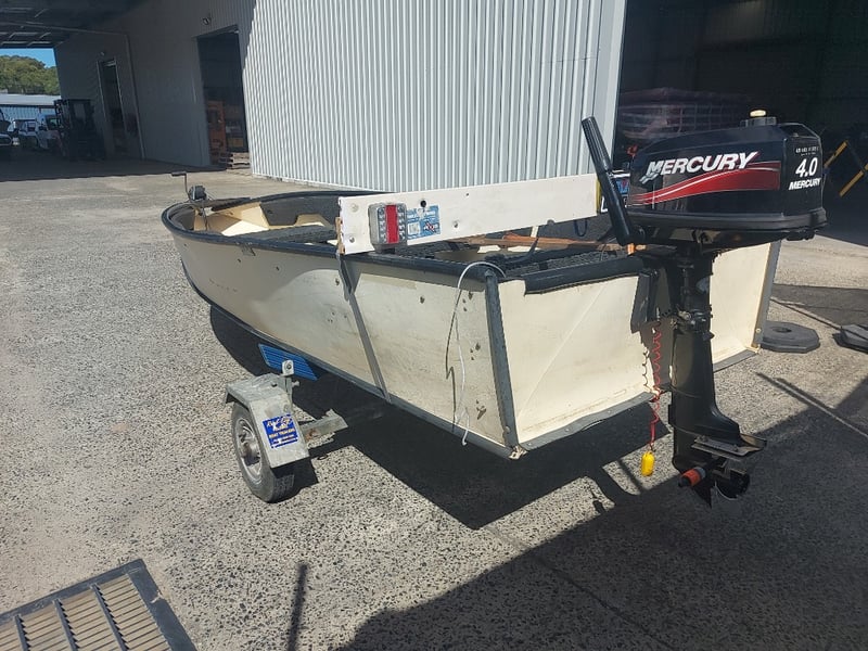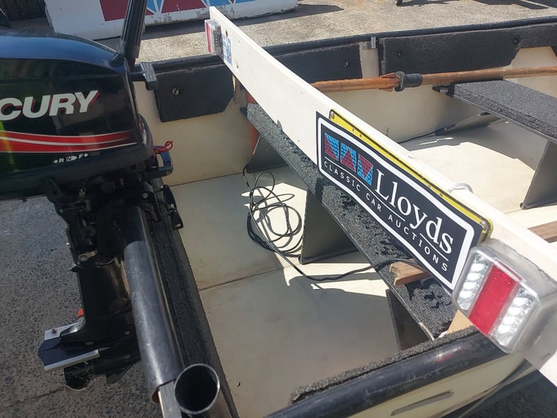 Description/extras: Mercury Out Board Motor , Anchors, Life Vests, Boat Folds Down For Convenient Storage
