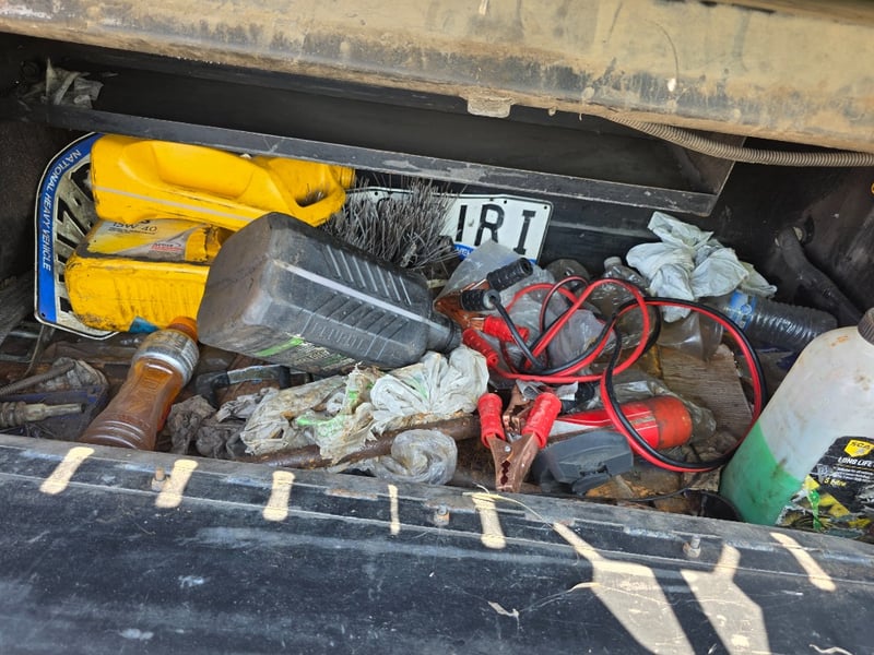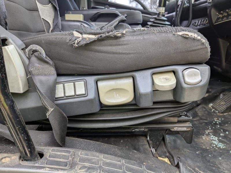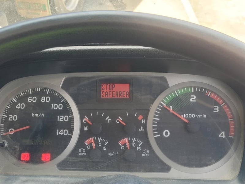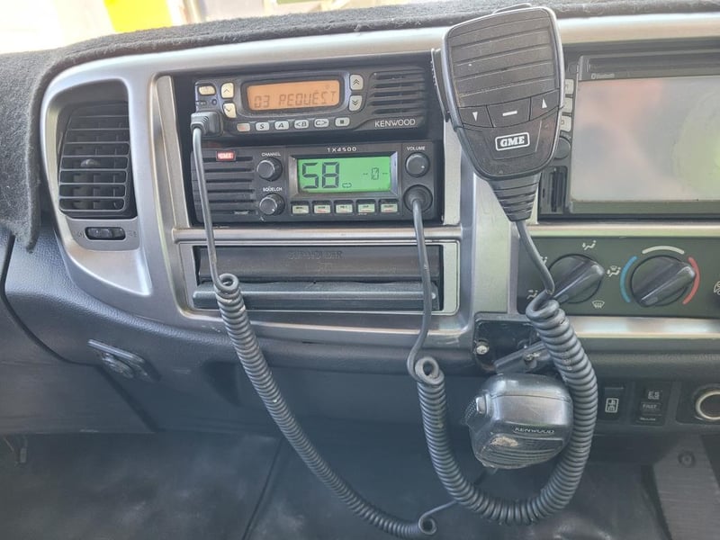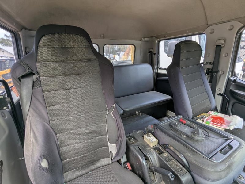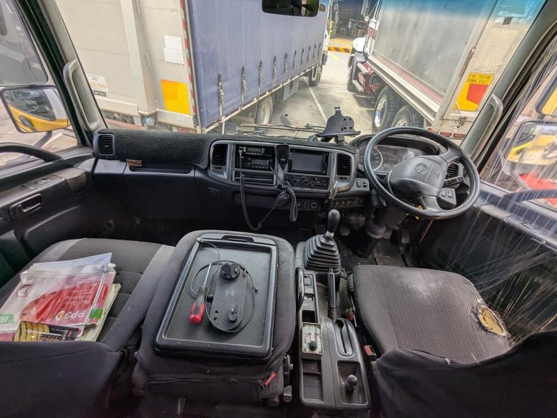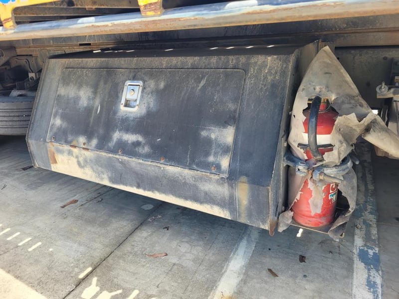 Description/extras: New batteries, large cab, UHF radio dash mat, drink holders, yellow energy caution beacons and light sign on roof, LED bat spot lights, drivers side window smashed, marks & scratches, air leak, low fuel, warning notification on dashboard, will not release hand brake possibly because of air leak, no remote for tray side tray controls will not engage, inspection highly recommended.