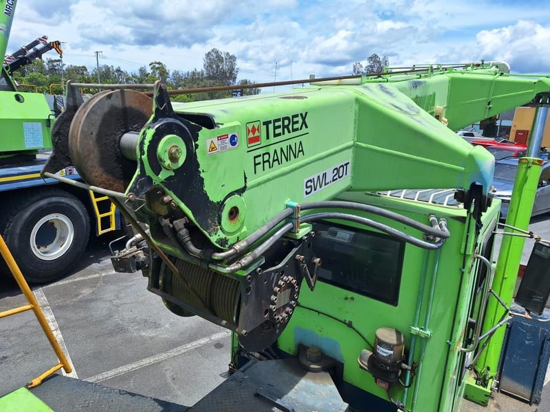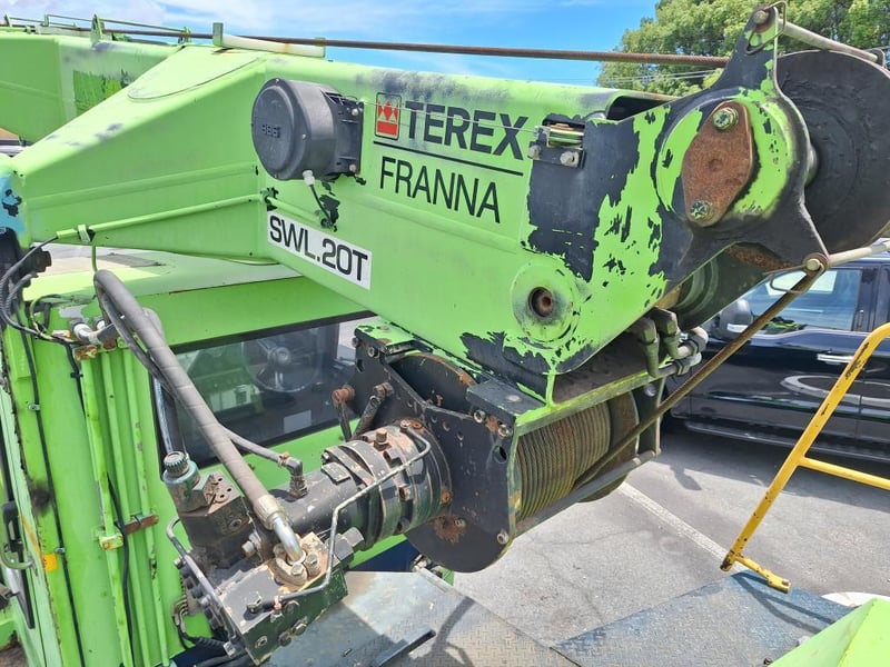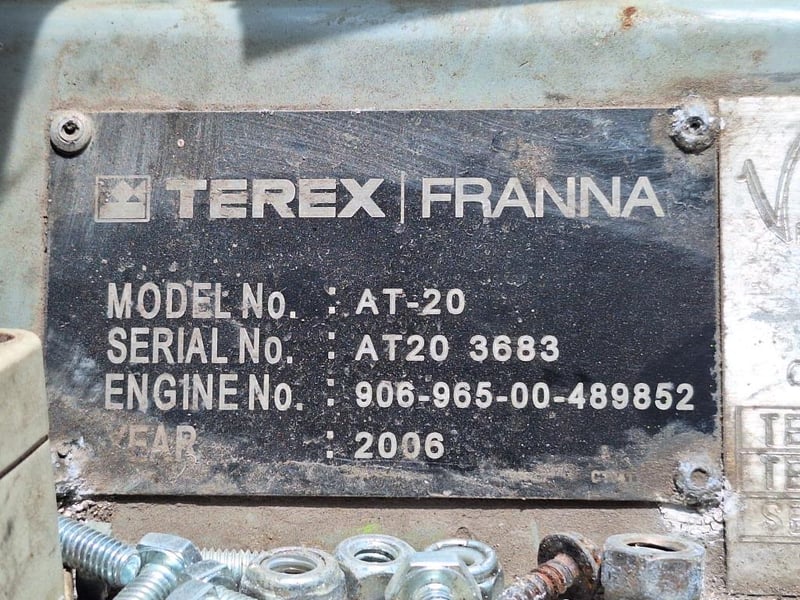 2006 Terex Franna AT-20 Crane Truck Date of Manufacture: 2006 Make: Terex Franna Model: AT-20 Configuration: 8x2 Next Inspection: Next Major Inspection: Odometer Indicated: Hours Indicated: Engine: Mercedes OM906LA — turbocharged & intercooled diesel inline-6 Engine Serial No: 906-965-00-489852 Transmission: Automatic Colour: Green Seats: 2 Description: Battery Needs Jump Start SN: AT20 3683 Engine Number: 906-991-00-810421 Key# M46 Carrara