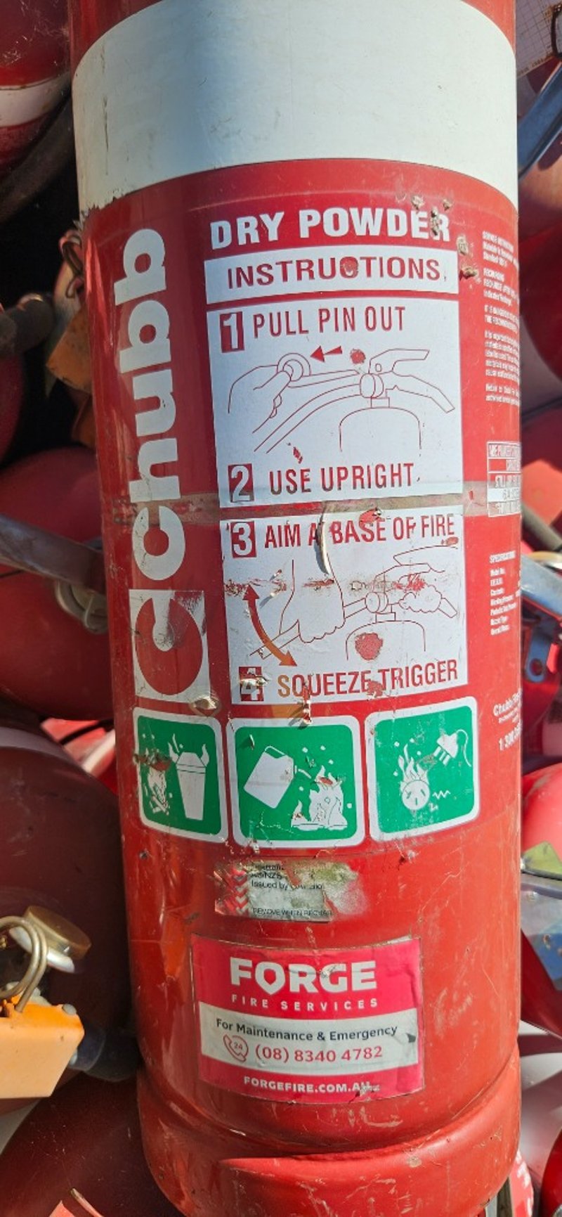 Fire Extinguishers, Assorted Fire Extinguishers, Expiry Dates unknown Inspection Highly Recommended Sold as lot *** PLEASE NOTE This is a SITE CLOSURE Collections must occur Strictly Thursday 18th Dec 2025 to Tuesday 23rd Dec 2025 - WEEKDAYS ONLY | 9am to 4pm, failure to collect items, shall be discarded / disposed of immediately, refunds will not be accepted *** Ryan Sawade | 0401 644 313 | [email protected]