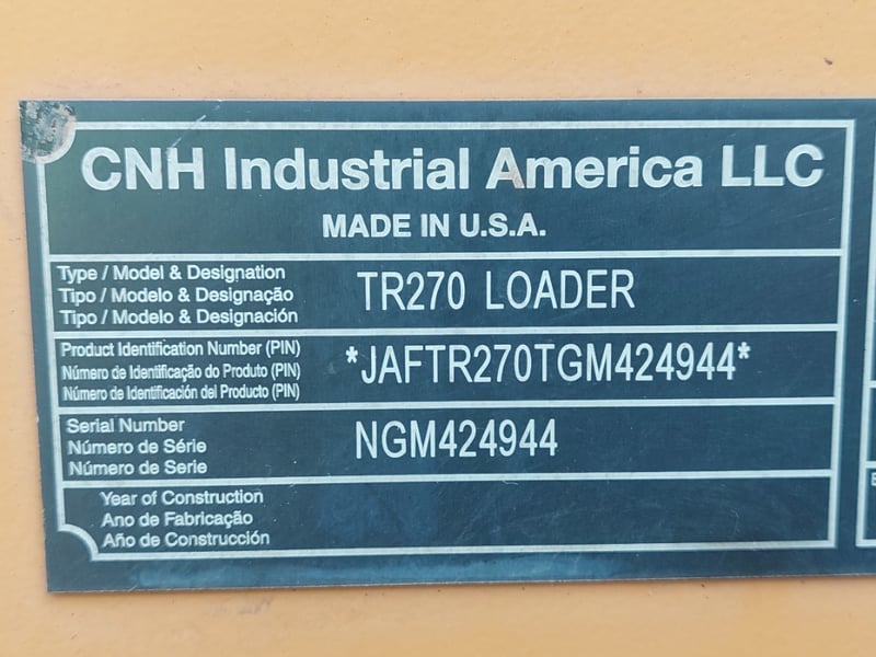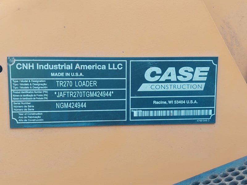 2016 Bobcat Case TR270 Year: 2016 Make: Case Model: TR270 PIN: JAFTR270TGM424944 Serial No: NGM424944 Body: Bobcat Engine: Case 4-Cylinder Turbo Diesel Engine No: Unsighted Hours Indicated: 2072hrs Configuration: Rubber Tacked Description: Push Button Start, Starts & Runs, Hydraulic Lock, Twin Steer Joystick, Axis Digital Screen, Jensen Radio Receiver, Norm 4in1 Bucket NOTE: New Front Door Glass Installed Sold Unregistered No Keys Carrara
